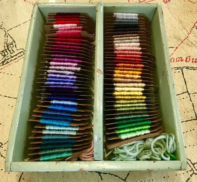 ...I thought it was time to put my growing collection of Batik DK into some sort of order, using these cardboard embroidery bobbins...